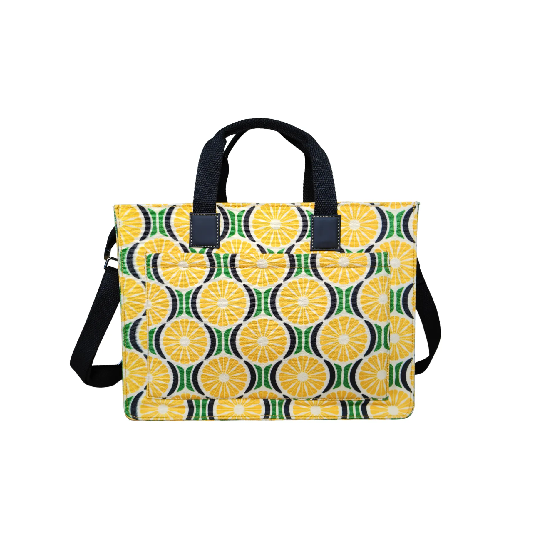 The Lime Box Tote brings a burst of freshness and practicality to your everyday routine. Its bright, cheerful Lime print gives it a modern yet playful vibe, making it an eye-catching accessory for any occasion. Crafted for versatility, this tote features a waterproof inner compartment that protects your belongings from accidental spills or rain. The two small front buttoned pockets provide handy access to essentials like keys, earphones, or cards, while the large back pocket with a button closure offers additional space for quick-grab items such as documents or a mobile phone. Inside, it includes a chain pocket and a small compartment that help keep your valuables neatly organized. Despite being lightweight at 560 grams, the Lime Tote maintains a sturdy structure, combining durability with easy carrying comfort. Whether you’re heading to work, shopping, or traveling light, the Lime Box Tote is a perfect mix of elegance, utility, and fresh style — designed to brighten your everyday adventures.